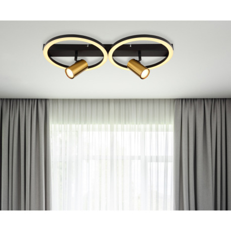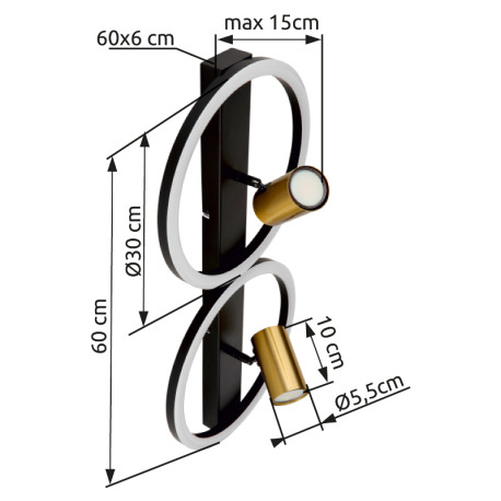 Nástenné svietidlo kov čierny matný, kov mosadz matná, plast biely, DxŠxV: 600x300x155mm, vrátane LE