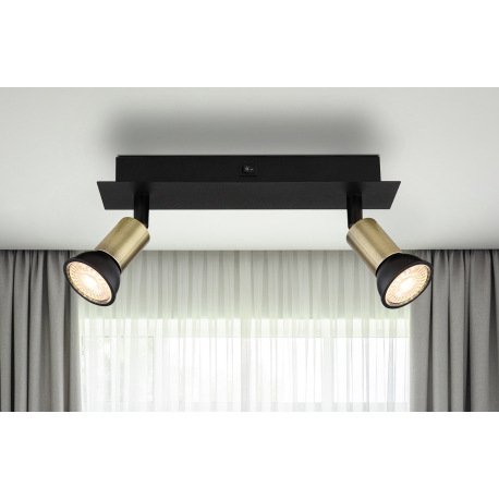 Nástenné svietidlo kov čierny matný, kov zlatej farby, kolískový vypínač na výrobku, DxŠxV: 250x60x9
