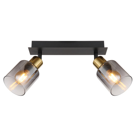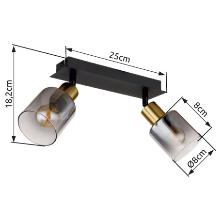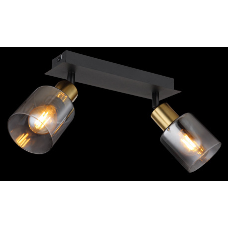 Nástenné svietidlo, kov čierny matný, kov zlatý matný, sklo dymové, priehľadné, DxŠxV: 250x80x182mm,