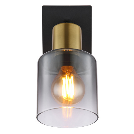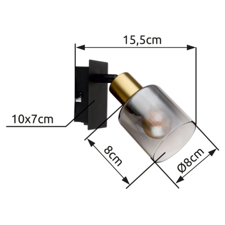 Nástenné svietidlo, kov čierny matný, kov zlatý matný, sklo dymové, priehľadné, kolískový vypínač, Š
