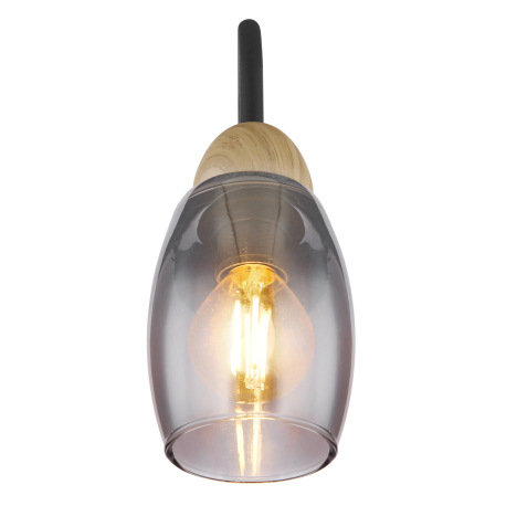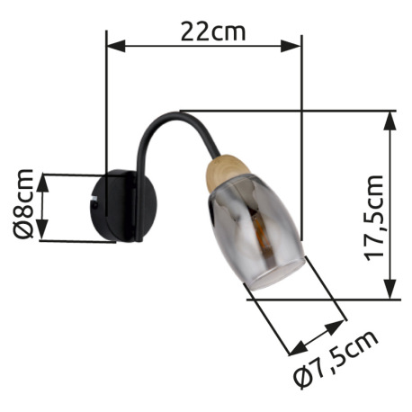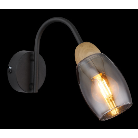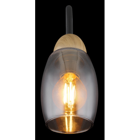 Nástenné svietidlo kov čierny matný, sklo dymové, kov imitácia dreva, smer svetla: nadol, ŠxV: 80x17