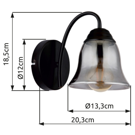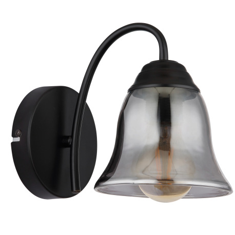Nástenné svietidlo, kov čierny matný, sklo dymové, ŠxV: 135x185mm, H: 203mm, bez žiarovky 1x E27, ma