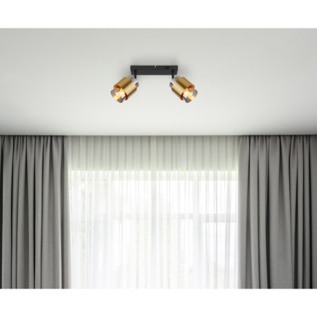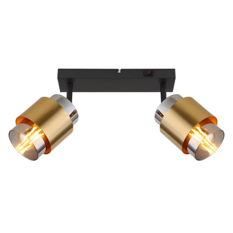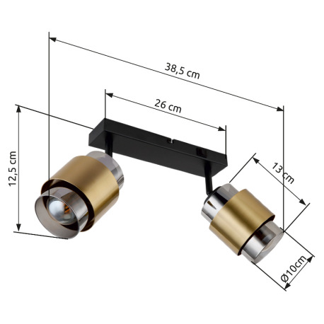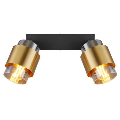 Nástenné svietidlo kov čierny matný, sklo dymovej farby, mosadzný krúžok, vypínač, DxŠxV: 260x100x12
