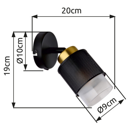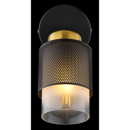 Nástenné svietidlo, kov čierny matný, sklo satinované, priehľadné, kov mosadznej farby, ŠxV: 100x190