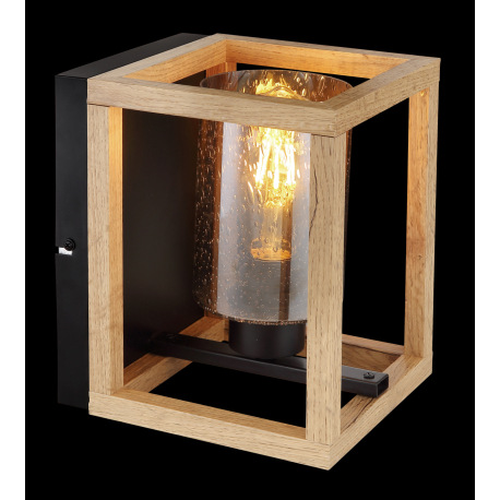 Nástenné svietidlo, kov čierny, MDF hnedá, dymové sklo, sklo s bublinami, ŠxV:170x220, H:195, bez ži