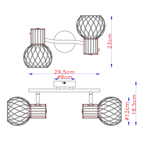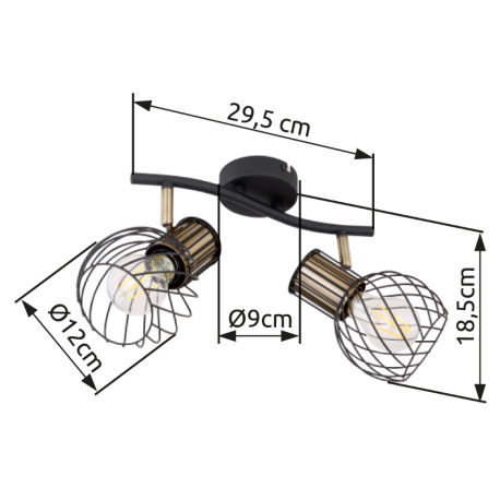 Nástenné svietidlo, kov čierny, mosadzný, DxŠxV: 296x230x185, bez žiaroviek 2xE27, max. 40W 230V