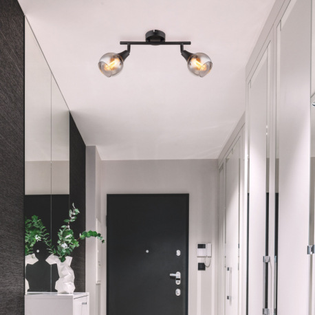 Nástenné svietidlo, kov čierny, sklo dymové, DxŠxV: 280x90x166mm, bez žiaroviek 2xE14, max. 40W 230V