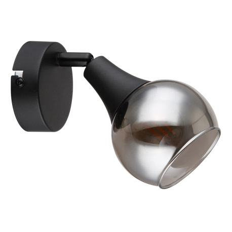 Nástenné svietidlo, kov čierny, sklo dymové, ŠxV: 90x140mm, H: 160mm, bez žiarovky 1xE14, max. 40W 2