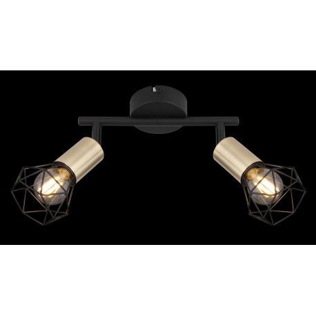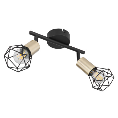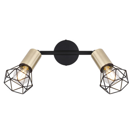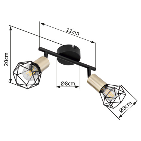 Nástenné svietidlo, kov čierny, starožitná mosadz, DxŠxV: 220x80x200, bez žiaroviek 2xE14, max. 40W