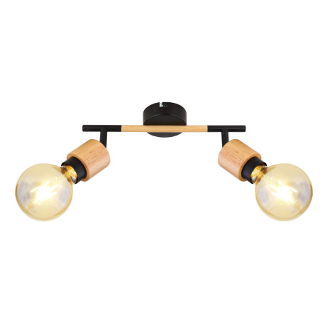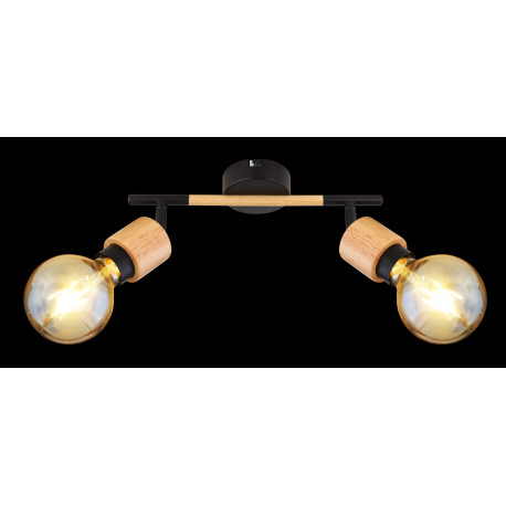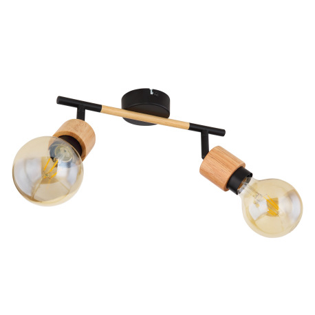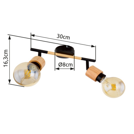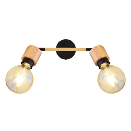 Nástenné svietidlo, kov čierny, svetlé drevo, DxŠxV:300x80x160, bez žiaroviek 2xE27, max. 40W 230V
