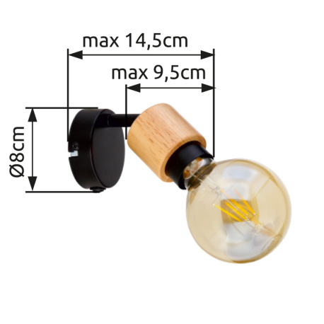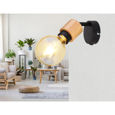 Nástenné svietidlo, kov čierny, svetlé drevo, vypínač, ŠxV: 80x95, H: 145,bez žiarovky 1xE27, max. 4