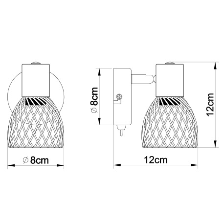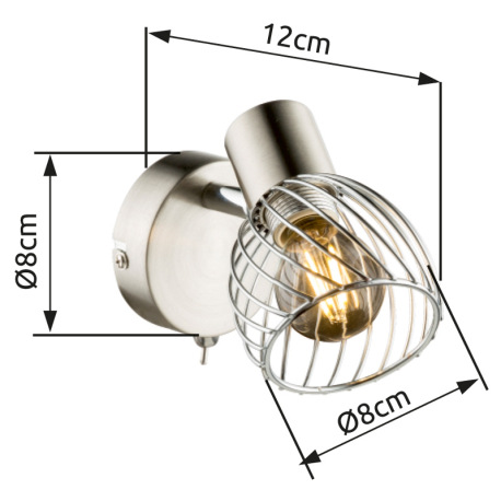 Nástenné svietidlo, kov, nikel, chróm, vypínač, ŠxV: 80x120, H: 120, bez žiarovky 1xE14, max. 40W 23