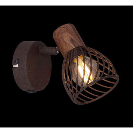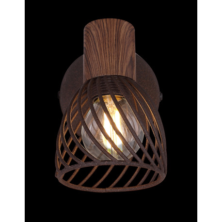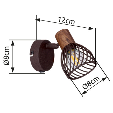 Nástenné svietidlo, kov vo farbe imitujúcu hrdzu, kov imitácia dreva, vypínač, ŠxV:80x120, H:130, be