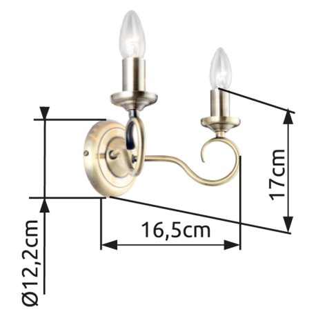 Nástenné svietidlo, mosadz, ŠxV:240x170, H: 165, bez žiaroviek 2xE14, max. 40W 230V.