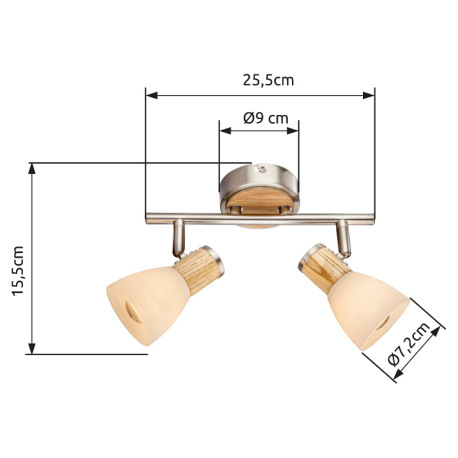 Nástenné svietidlo, nikel matný, drevo, sklo biele pruhované, DxV: 255x155, bez žiaroviek 2xE14, max