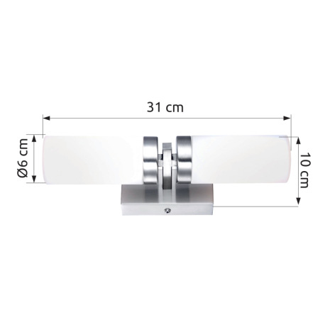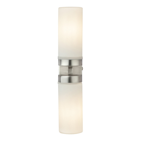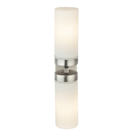 Nástenné svietidlo, nikel matný, sklo biele satinované, pre vnútorné použitie, IP44, DxV:120x310, H:
