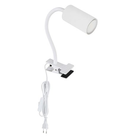 Nástenné svietidlo, štipcové, kov biely, plast biely, PVC kábel biely, s vypínačom na kábli, Flexo,