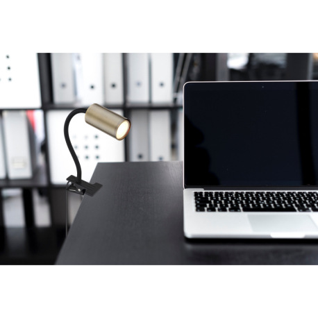 Nástenné svietidlo, štipcové, kov čierny, plast čierny, mosadz, čierny PVC kábel, s vypínačom na káb