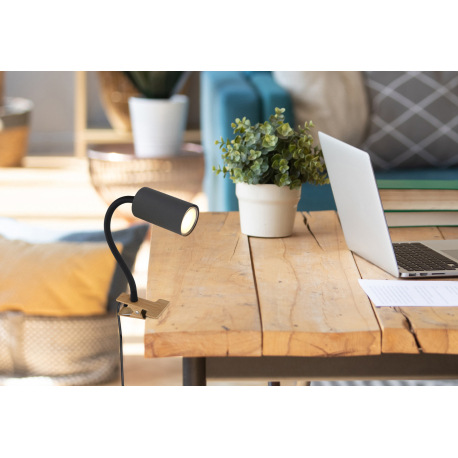 Nástenné svietidlo, štipcové, kov grafit, plast čierny/vzhľad dreva, čierny PVC kábel, s vypínačom n