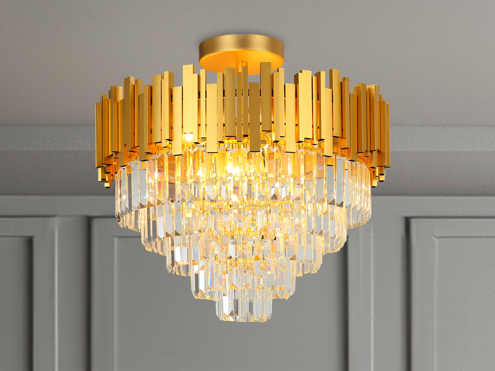 Stropné kryštálové svietidlo značky NEDES je stelesnením luxusu a elegancie, ktoré pozdvihne úroveň každého interiéru. Svojím nadčasovým dizajnom sa dokonale hodí do obývačky, spálne, jedálne či predsiene – všade tam, kde chcete vytvoriť výnimočnú atmosféru.