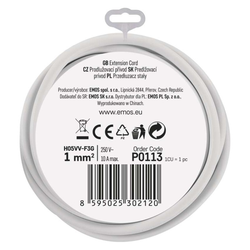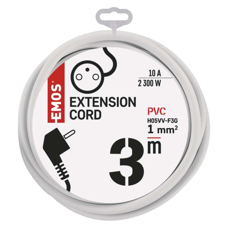 Predlžovací kábel 3 m / 1 zásuvka / biely / PVC / 1 mm2