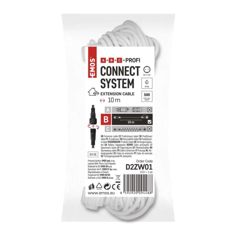 Predlžovací kábel pre spojovacie reťaze Profi biely, 10 m, vonkajší aj vnútorný