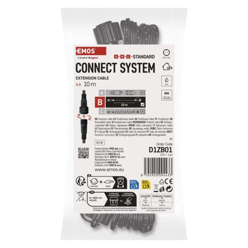 Predlžovací kábel pre spojovacie reťaze Standard čierny, 10 m, vonkajší aj vnútorný