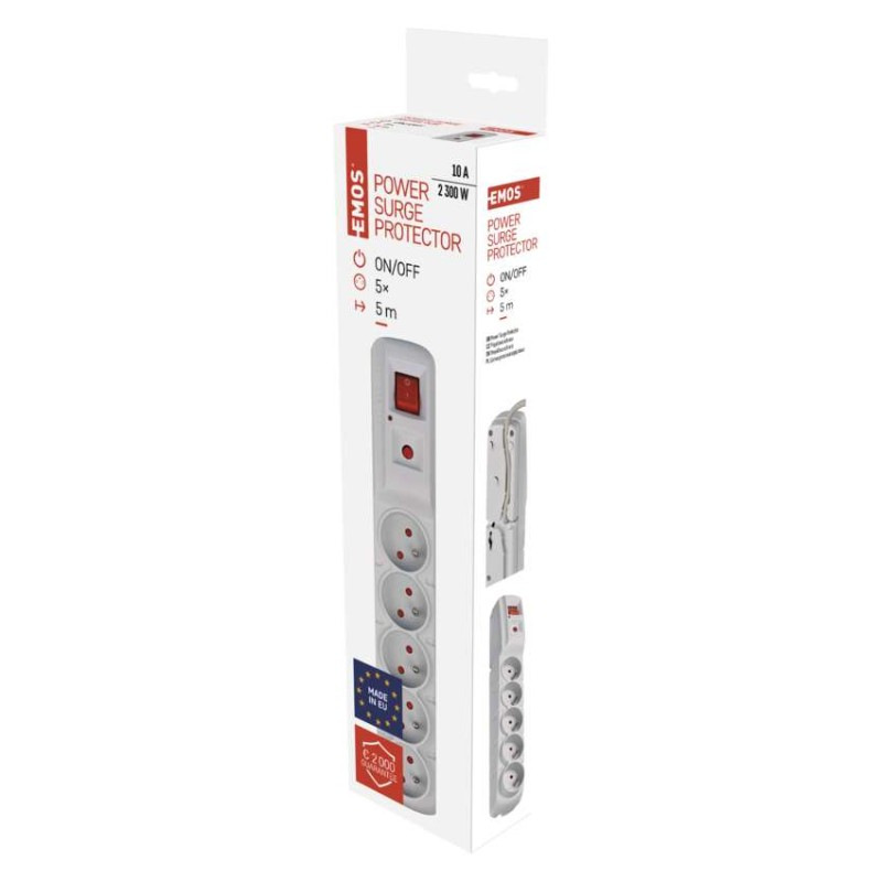 Prepäťová ochrana – 5 zásuviek, 5m, sivá