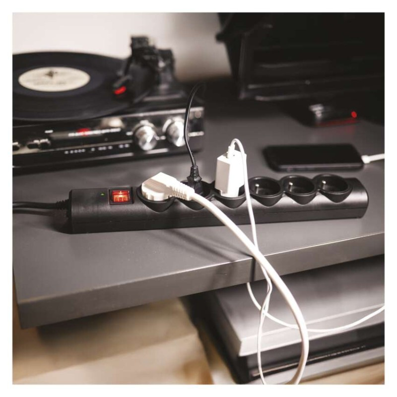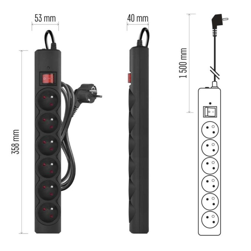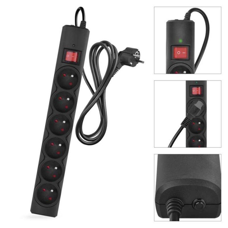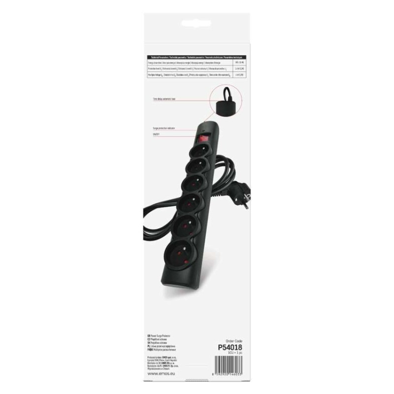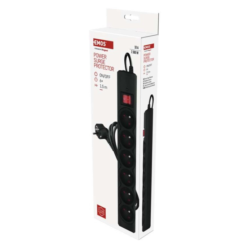 Prepäťová ochrana – 6 zásuviek, 1,5 m, čierna