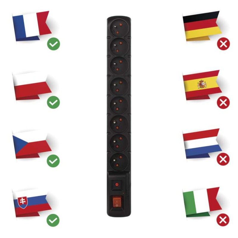 počet zásuviek: 8× 2P + PE