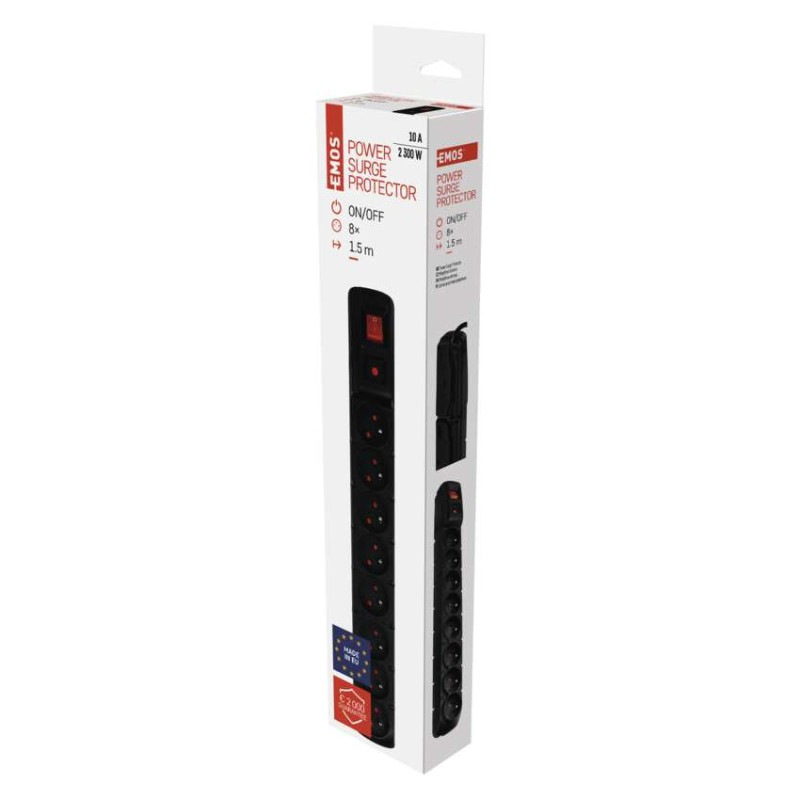 Prepäťová ochrana – 8 zásuviek, 1,5m, čierna