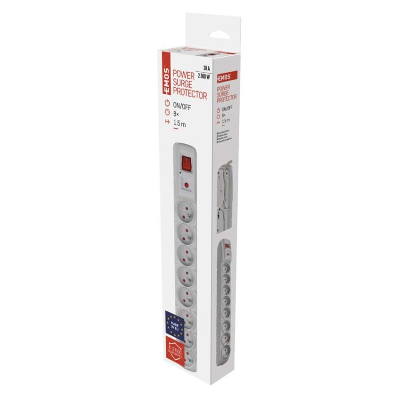 Prepäťová ochrana – 8 zásuviek 1,5m, sivá