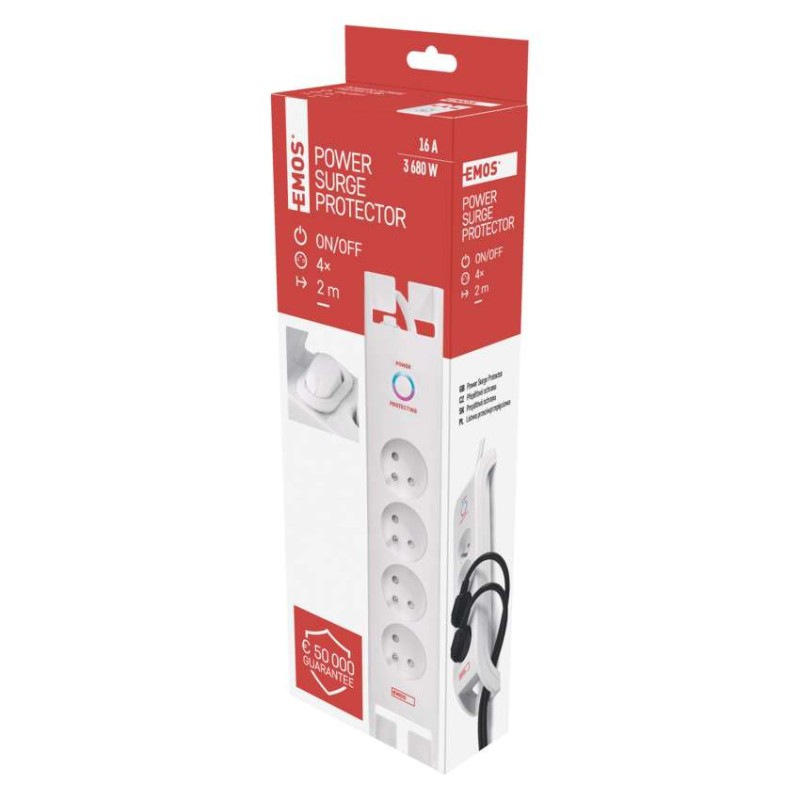 Prepäťová ochrana 900J – 4 zásuvky, 2m, biela