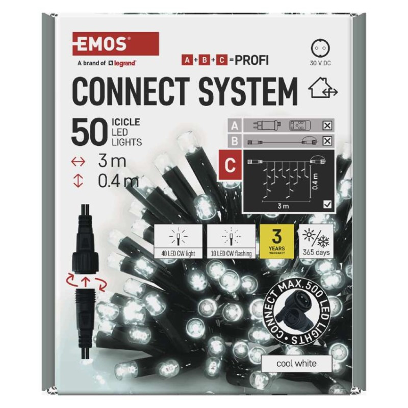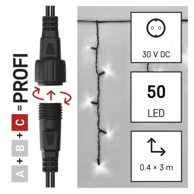 Profi LED spoj. reťaz preblikávajúca – cencúle, 3 m, vonkajšia, studená biela