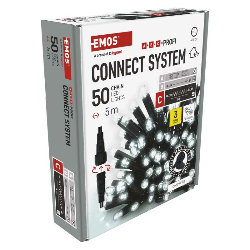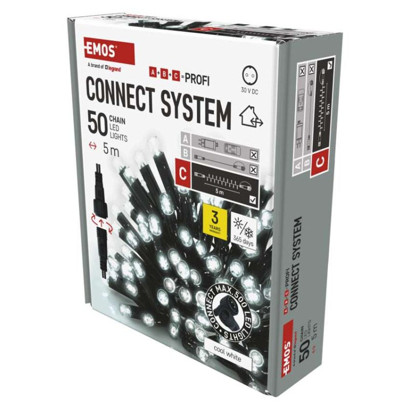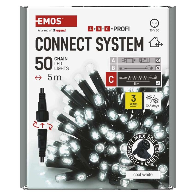 Profi LED spojovacia reťaz čierna, 5 m, vonkajšia aj vnútorná, studená biela