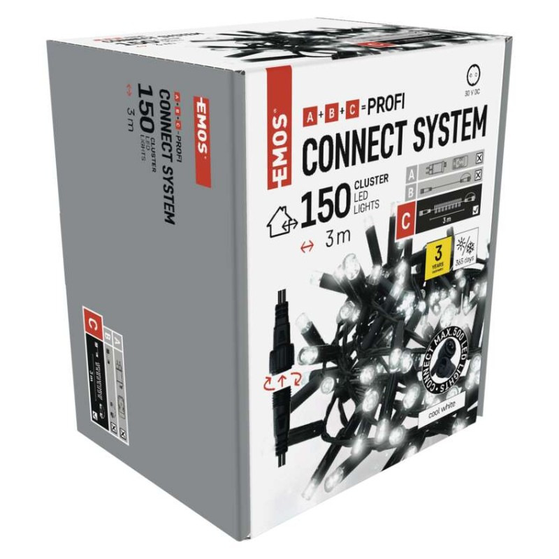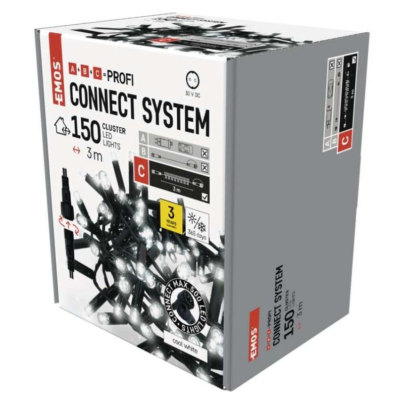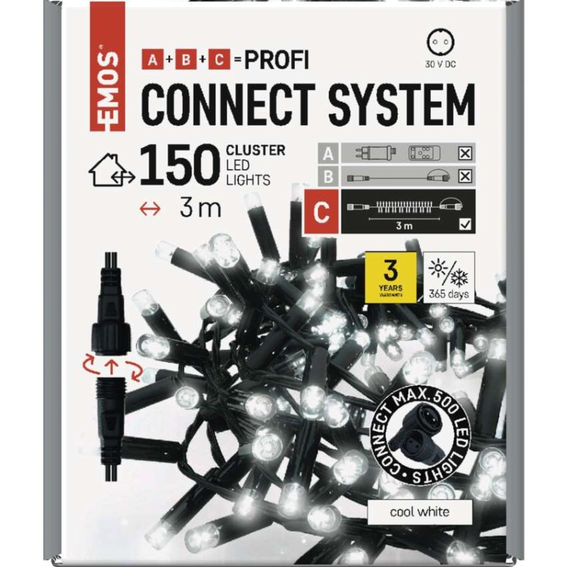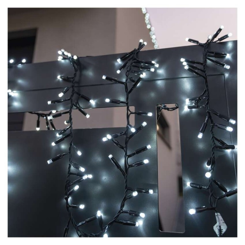 Profi LED spojovacia reťaz čierna – cluster, 3m, vonkaj. aj vnútorná, studená biela
