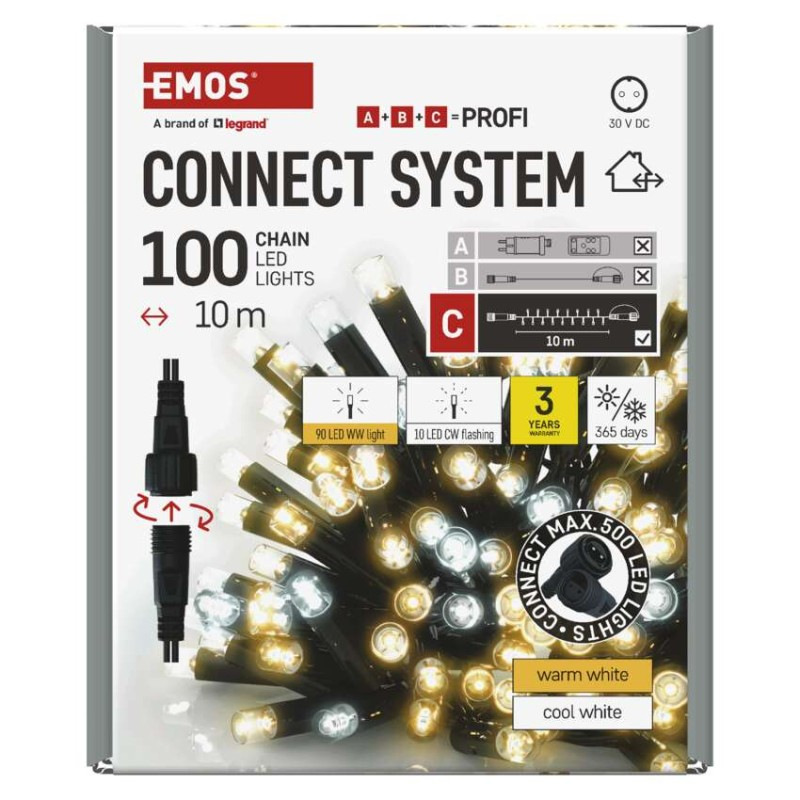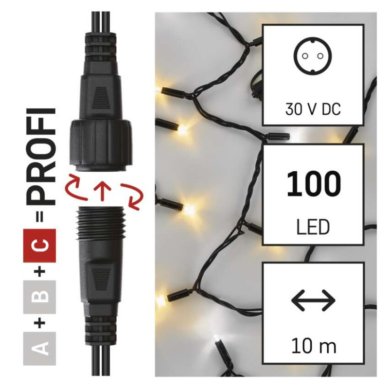 Profi LED spojovacia reťaz preblikávajúca, 10 m, vonkajšia, teplá/studená biela