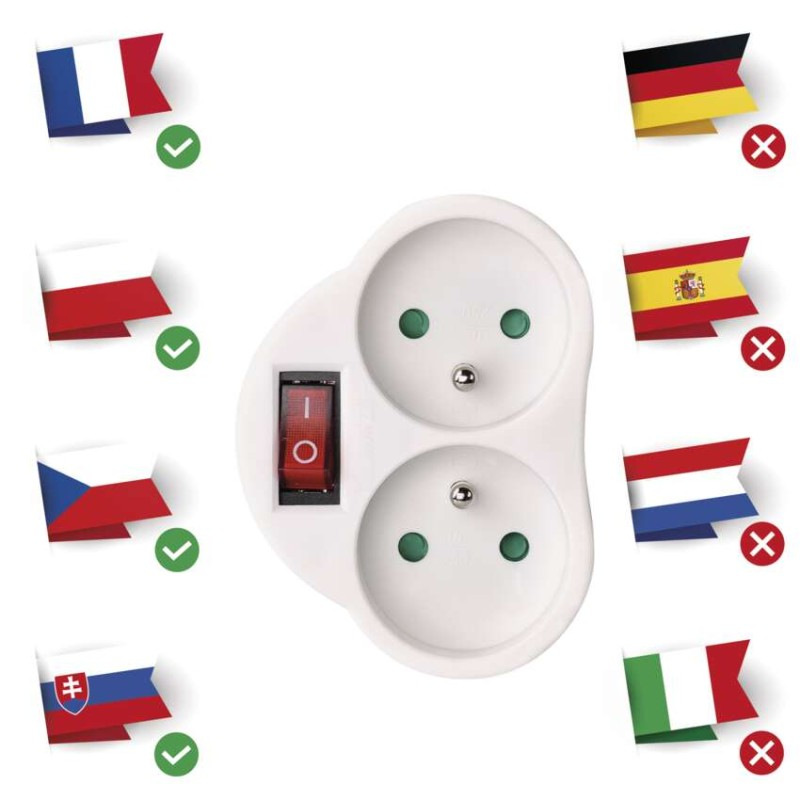 produkt: rozbočovacia zásuvka 2× s vypínačom