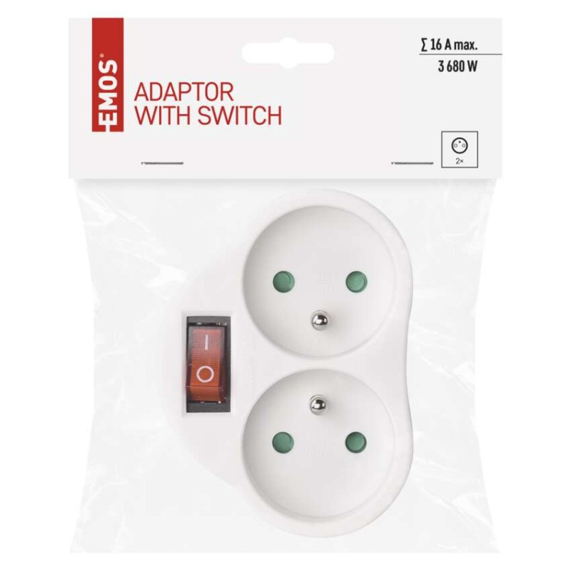 Rozbočovacia zásuvka 2× guľatá s vypínačom, biela