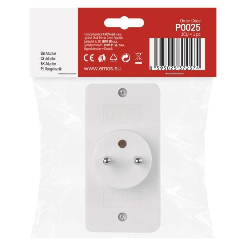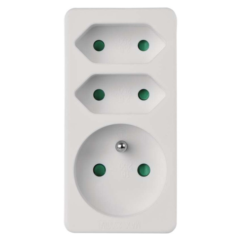 Rozbočovacia zásuvka 2× plochá + 1× guľatá, biela