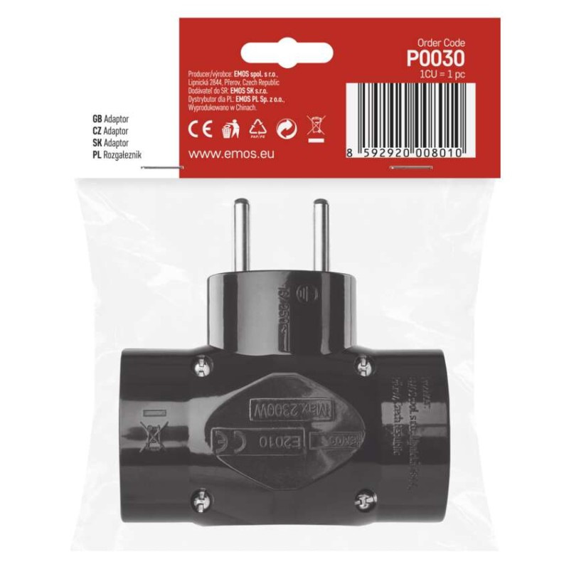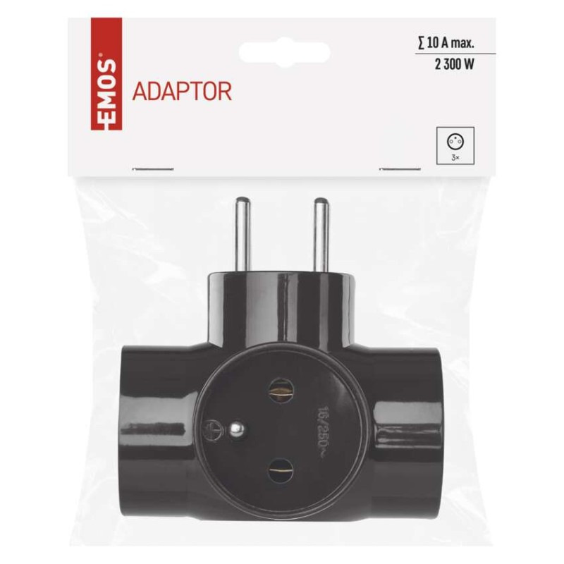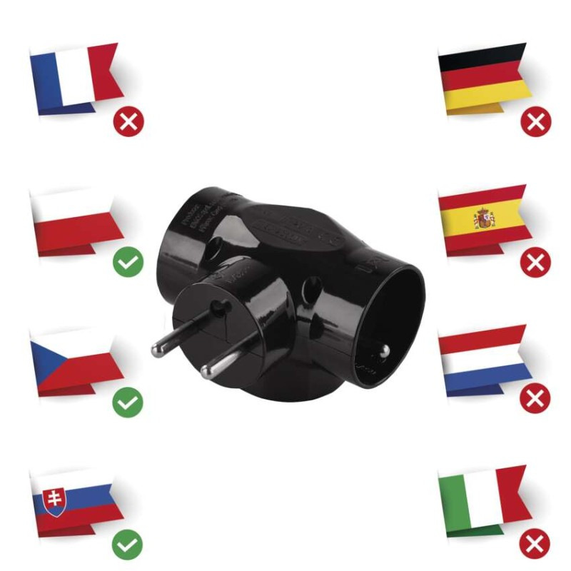 Rozbočovacia zásuvka 3× guľatá, čierny