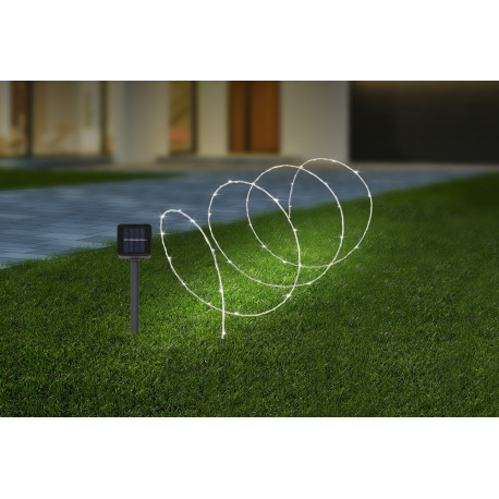 Solárne svietidlo, hliník, plast čierny, plast, svetielka na hliníkovom drôte, ohýbateľné, IP44, vyp