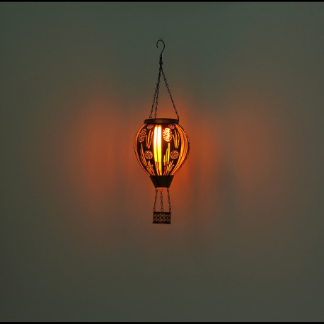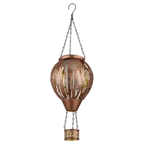 Solárne svietidlo, kov hnedý matný, kov čierny matný, kov s dekoratívnym dierovaním medenej farby, v