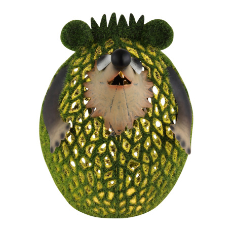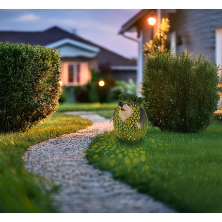 Solárne svietidlo, kov hnedý, plast zelený, vypínač, batéria AA 400mAh 1,2V, IP44, ježko, DxŠxV: 160