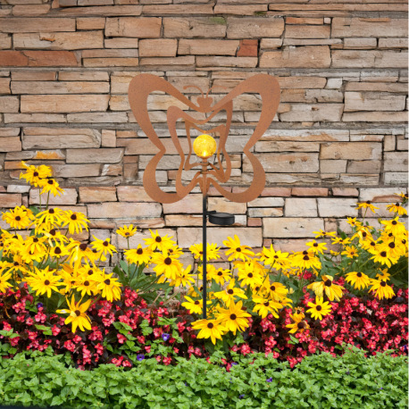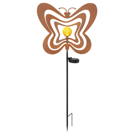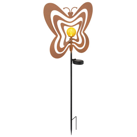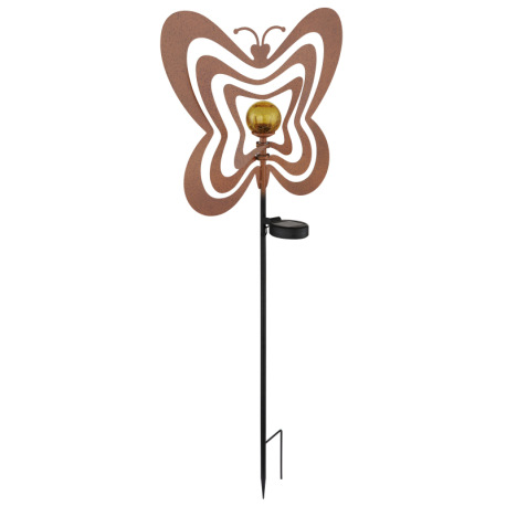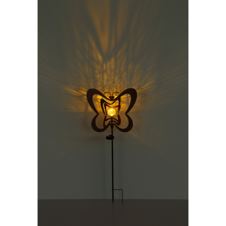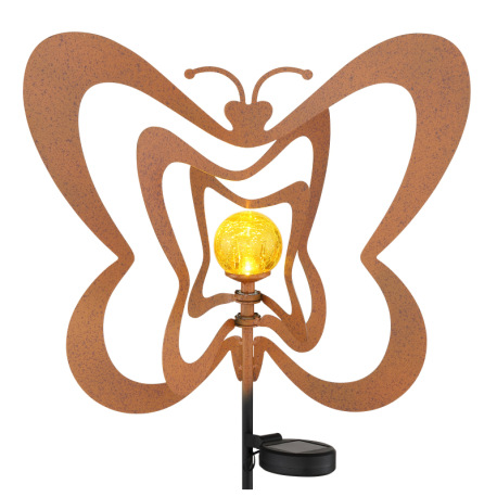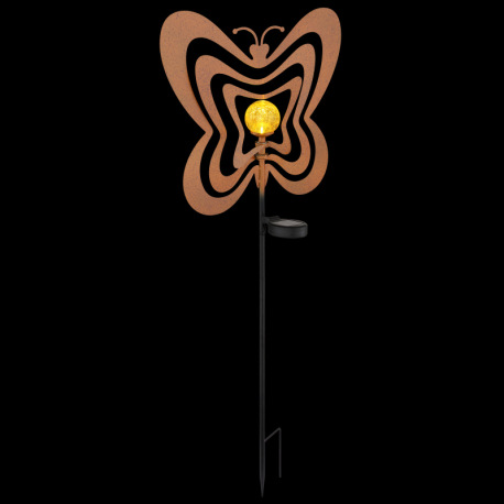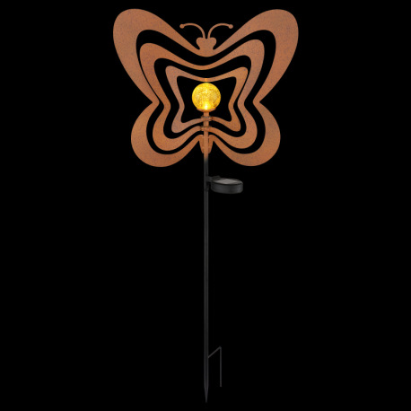 Solárne svietidlo, kov, imitácia hrdze, kov čierny, plast čierny matný, jantárová guľa s efektom pop