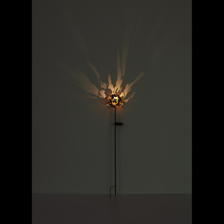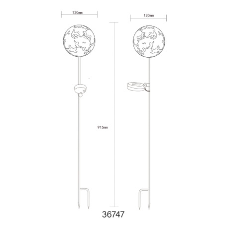 Solárne svietidlo, kov imitácia hrdze, vypínač, batéria AAA 300mAh 1,2V, IP44, glóbus s javorovými l