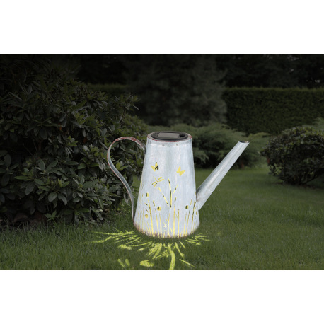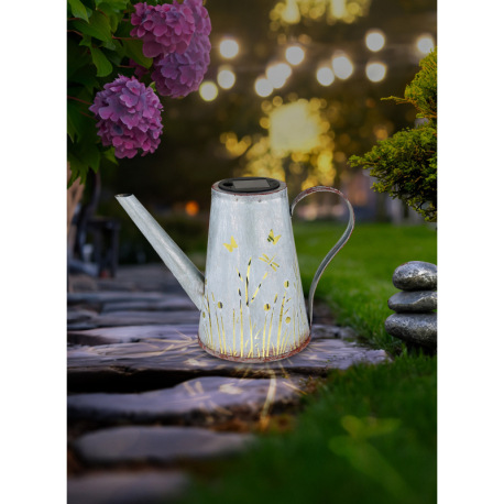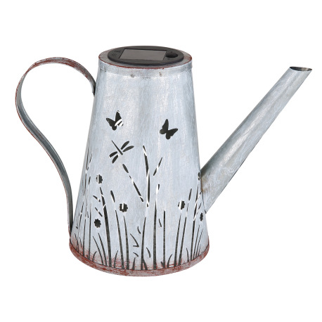 Solárne svietidlo, kov modrý antik, dekoratívne rezy, farba imitácia hrdze, plast čierny, vypínač, a