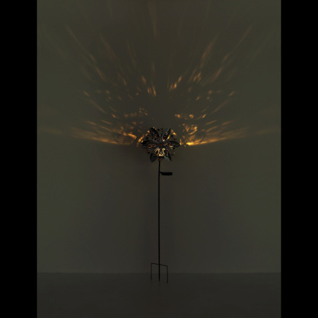 Solárne svietidlo, kov strieborno-sivý, kov čierny matný, číra sklenená guľa, žlté sklenené kryštály