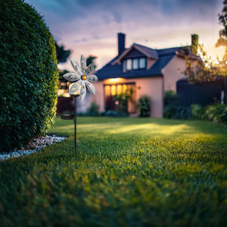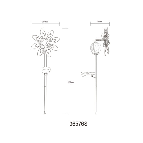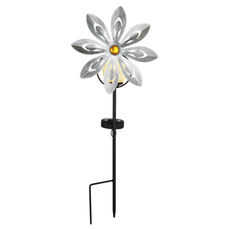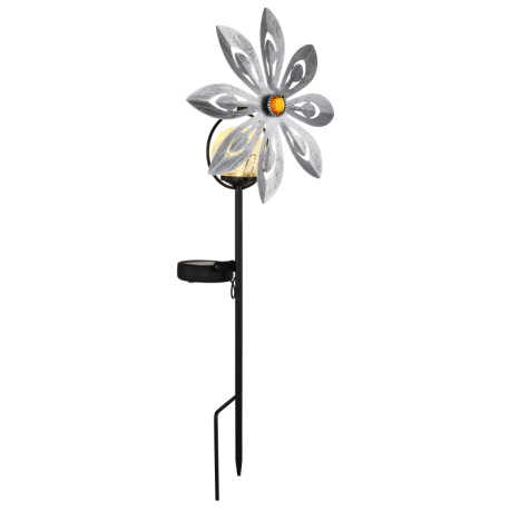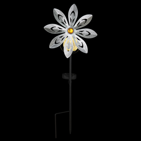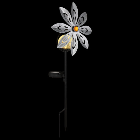 Solárne svietidlo, kov strieborno-sivý, kov čierny matný, číra sklenená guľa, žlté sklenené kryštály