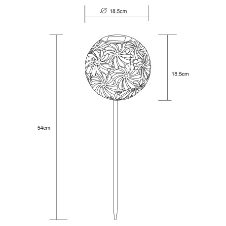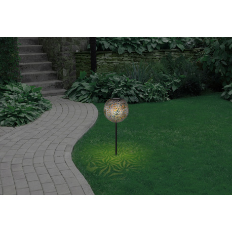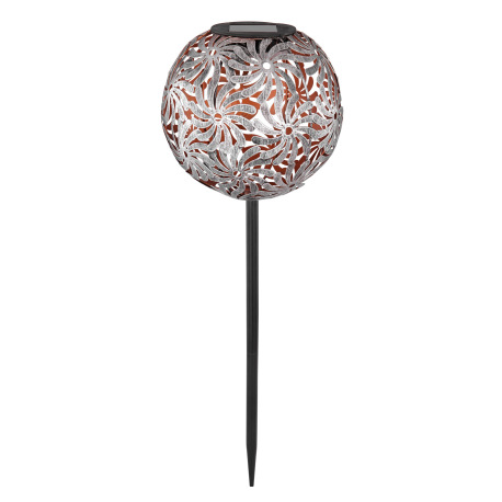 Solárne svietidlo, kov strieborný, s hrotom na zapichnutie do zeme, s dekoratívnym dierovaním, IP44,